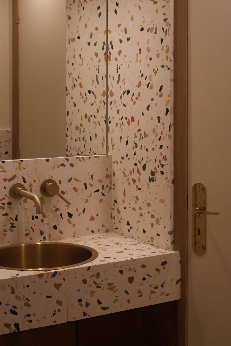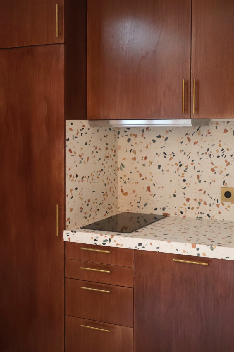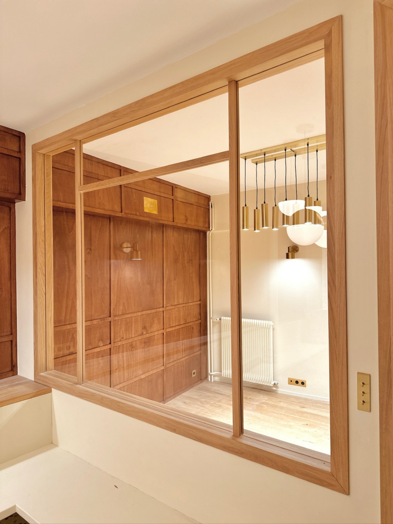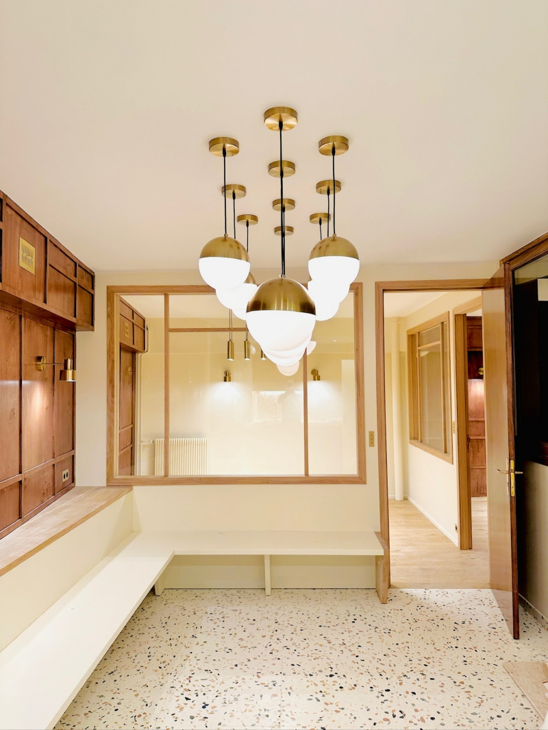 Rénovation intérieure d’un plateau de bureaux situé dans le 19e arrondissement de Paris. Le style choisi pour cet espace est inspiré des années 70. Les 100 m² de bureaux s’organisent autour d’un patio central et seule une façade ouvre sur l’extérieur et permet un second apport de lumière naturelle. Le challenge/objectif fut l’optimisation des circulations pour minimiser les surfaces inutilisées et la gestion des espaces par rapport aux apports de lumière restreints.