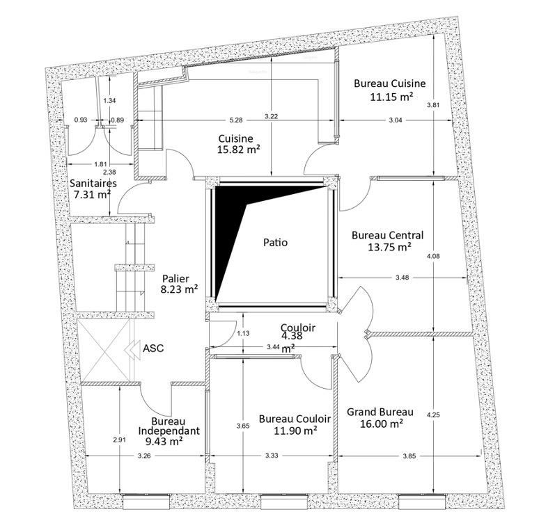 La réussite de ce projet est la réalisation d’un plateau de coworking conçut avec des espaces privatifs et la contrainte de lumière est devenue la signature du projet.